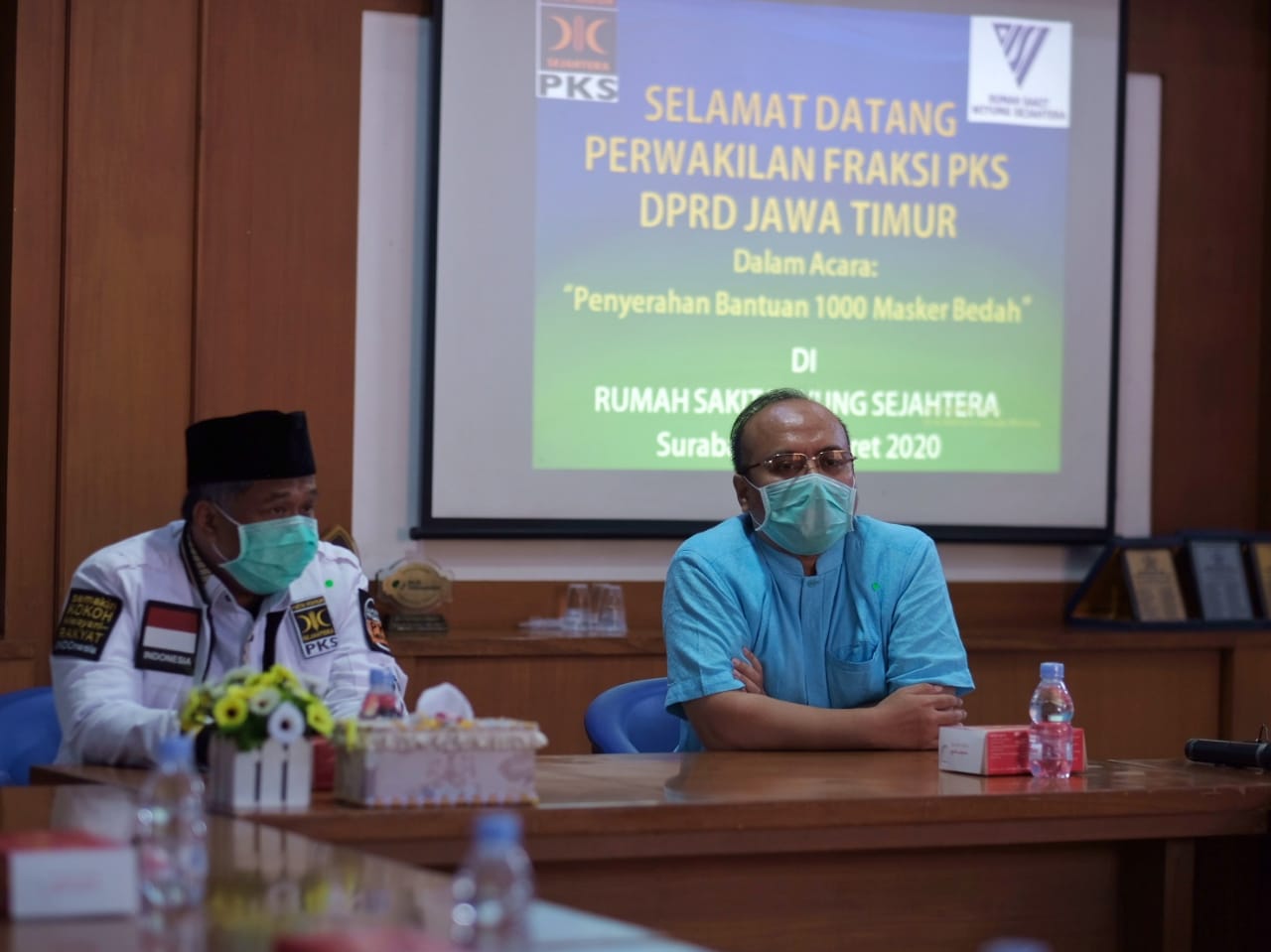 SURABAYA (26/3) Dewan Pengurus Wilayah Partai Keadilan Sejahtera (DPW PKS) Jawa Timur memberikan bantuan berupa masker kepada tenaga medis di beberapa Rumah Sakit di Kota Surabaya pada Kamis, 26 Maret 2020.